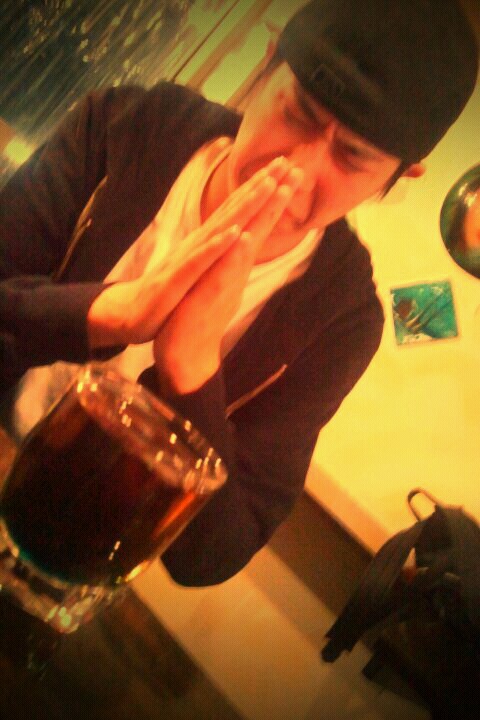 どうやら瓶ビールを飲みながら野球の話をしている様子だ