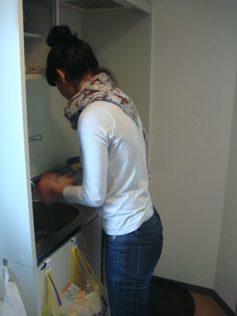 朝起きたら、みんなにコーヒーをいれてくれるし、キッチンを使って料理もしてるみたい