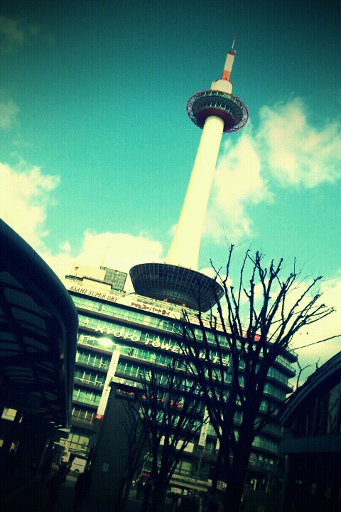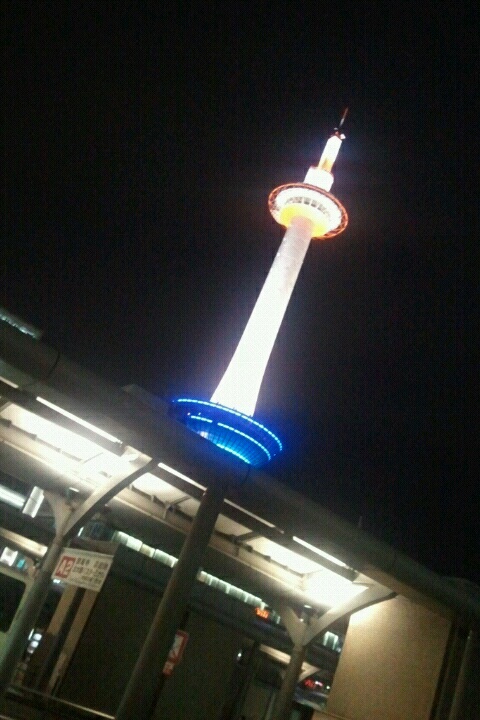 夜の京都タワーがお出迎え