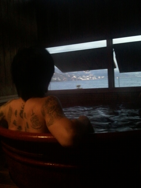 そんな海辺の朝の風景を眺めながら温泉に入って体を温める