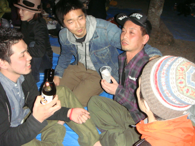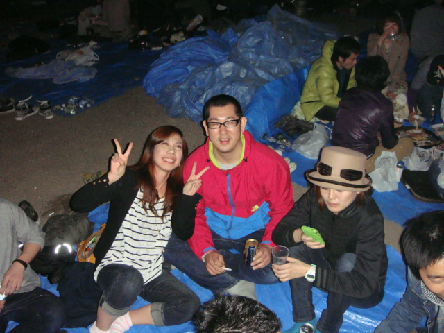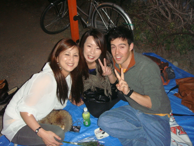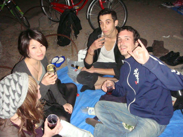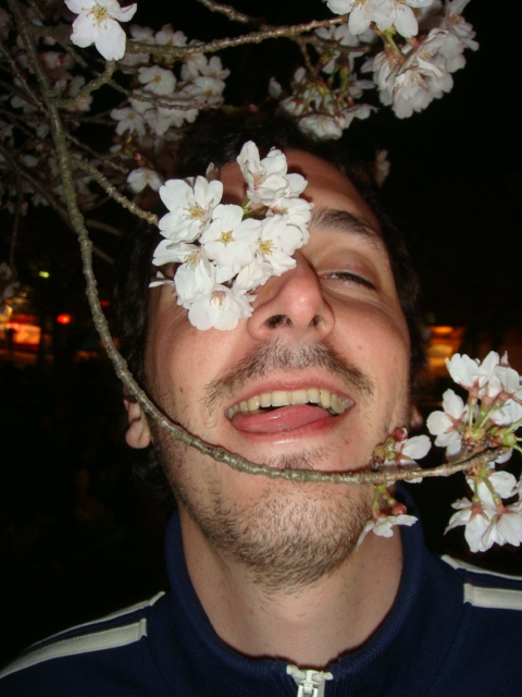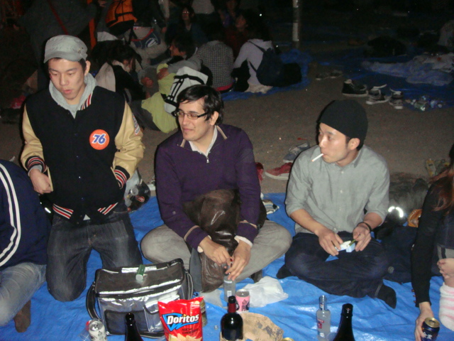 ちょこんと座って、酔い覚ましにコーヒーを片手に小さく花見