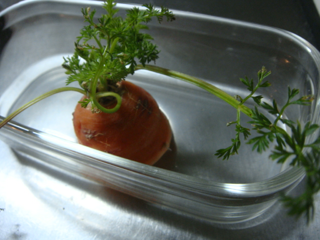 数週間前、キッチンの片隅に忘れ去られたニンジンさんを発見