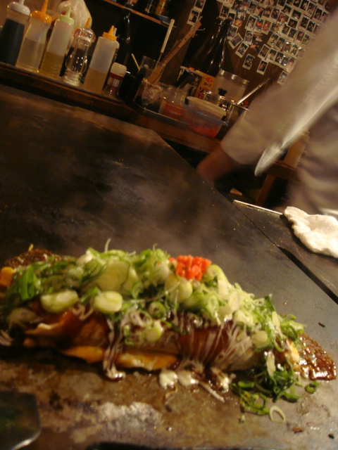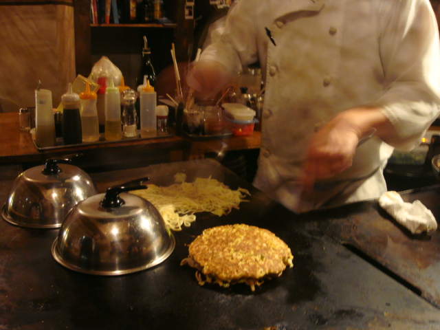 細い小道を入ったところにある、庶民的なお好み焼き屋にて