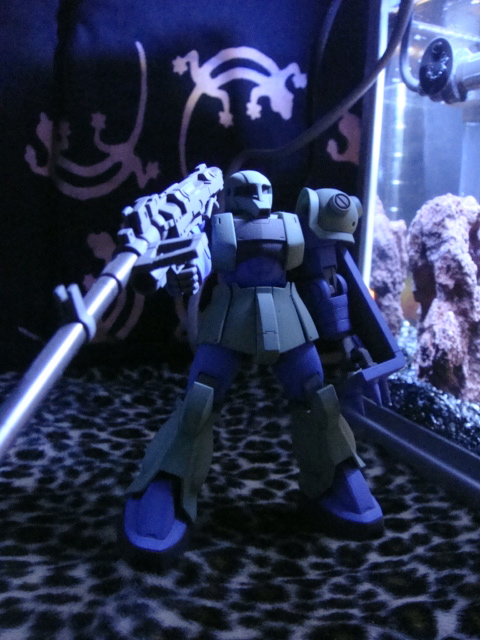 渋い!旧ザクのプラモデル、これも水槽の隣に設置