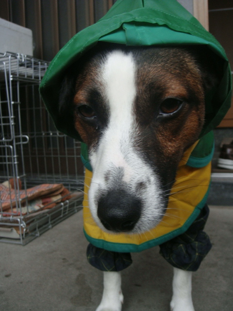 マックさんはレインコートで完全装備
