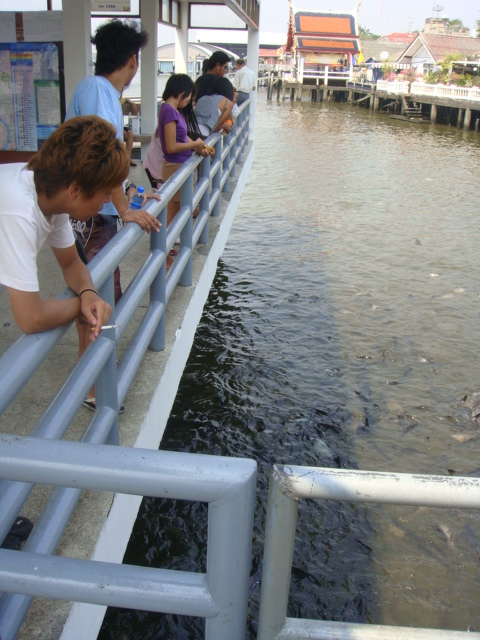 船着場の下には魚がいて、エサをやることも出来る