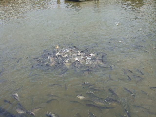 ただ魚のサイズがデカく、さらには大量にいて、勢いよくエサに群がる姿に恐怖感を覚えるぐらい