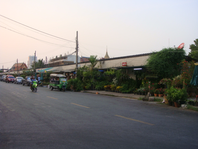 完全ローカルエリアの植木市場を越えて、チャオプラヤ川沿いまで行く