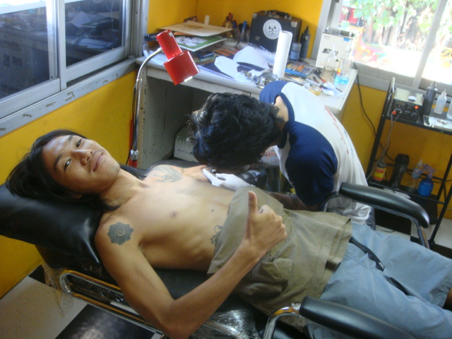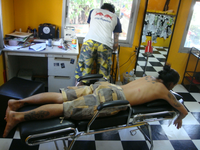 すべてがOKなら、施術台に横になって、タトゥー開始!!