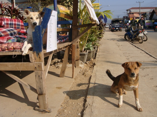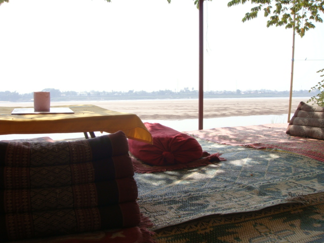 昼間はメコン川沿いに連立するバンガロー風のほったて小屋でフルーツシェイク片手に読書タイム。